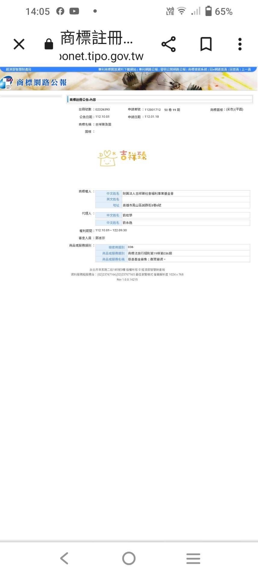 吉祥臻可愛商標圖案終於註冊通過了